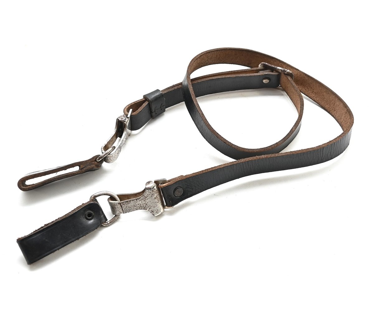 Very nice black leather cross strap in used, but good condition and complete with d-rings.