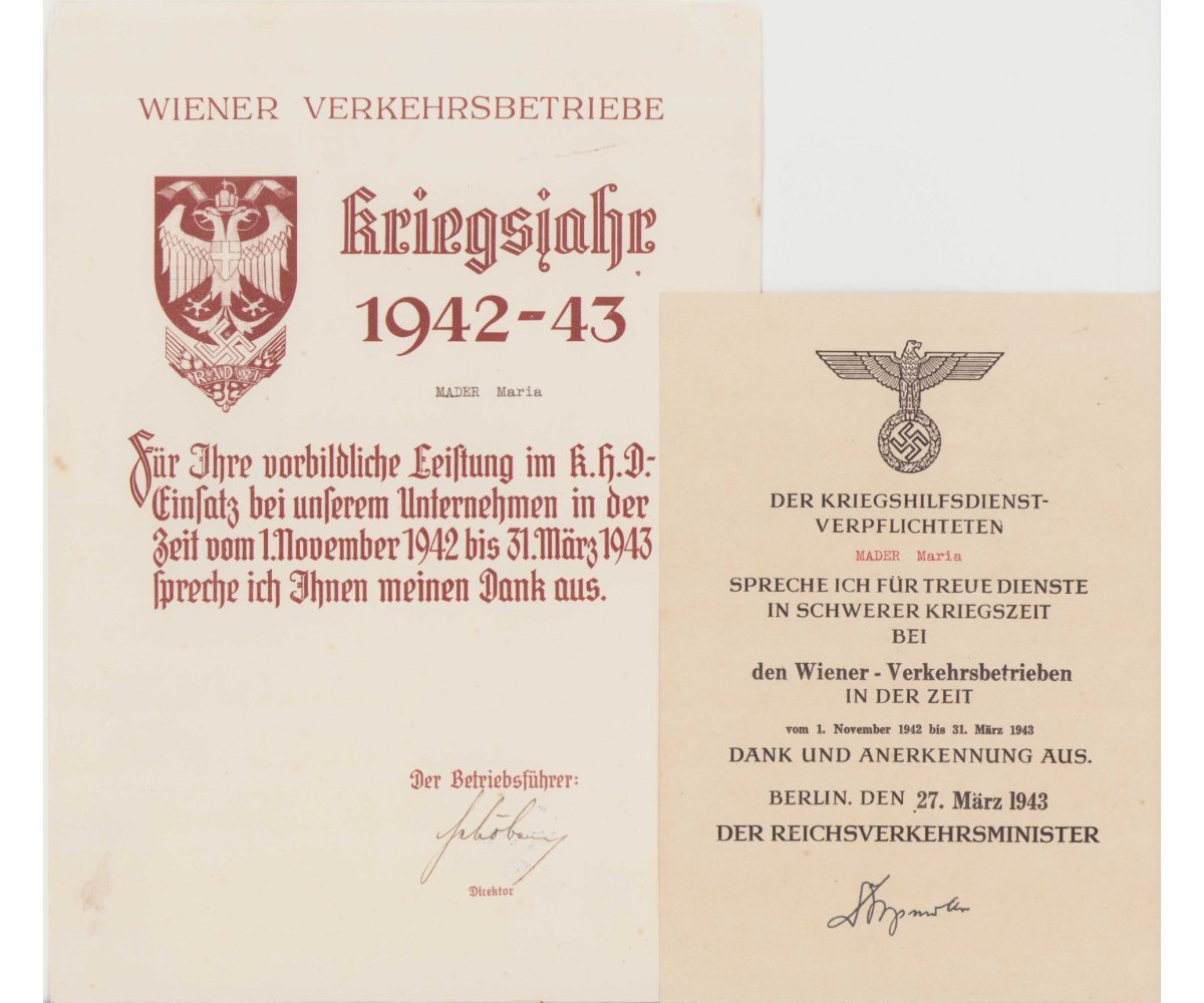 Very nice and harder to find Wiener Verkehrsbetriebe related award document set.