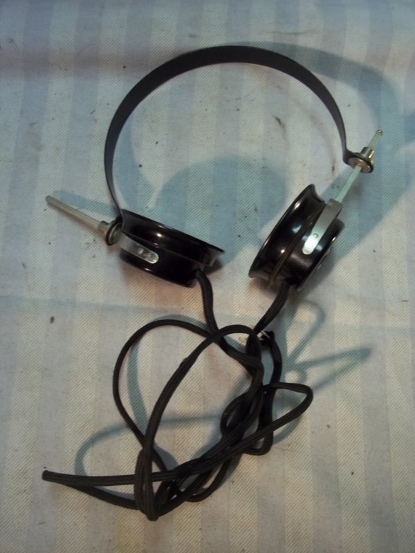 German headphones, nicely marked, Wehrmachtabnahme stamps. Duitse koptelefoon met WA stempel. geen stekker meer.