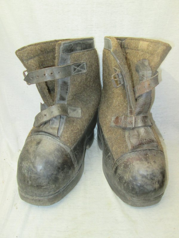 German felt and leather over boots, Duitse Wachstiefel. van vilt met een houten zool, Oostfront item zeer apart.