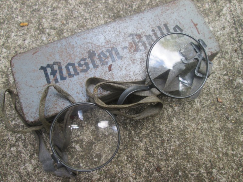 German glasses for the gasmask in metal box. Duitse bril voor het gasmasker, MASKEN- BRILLE. leuk origineel item.