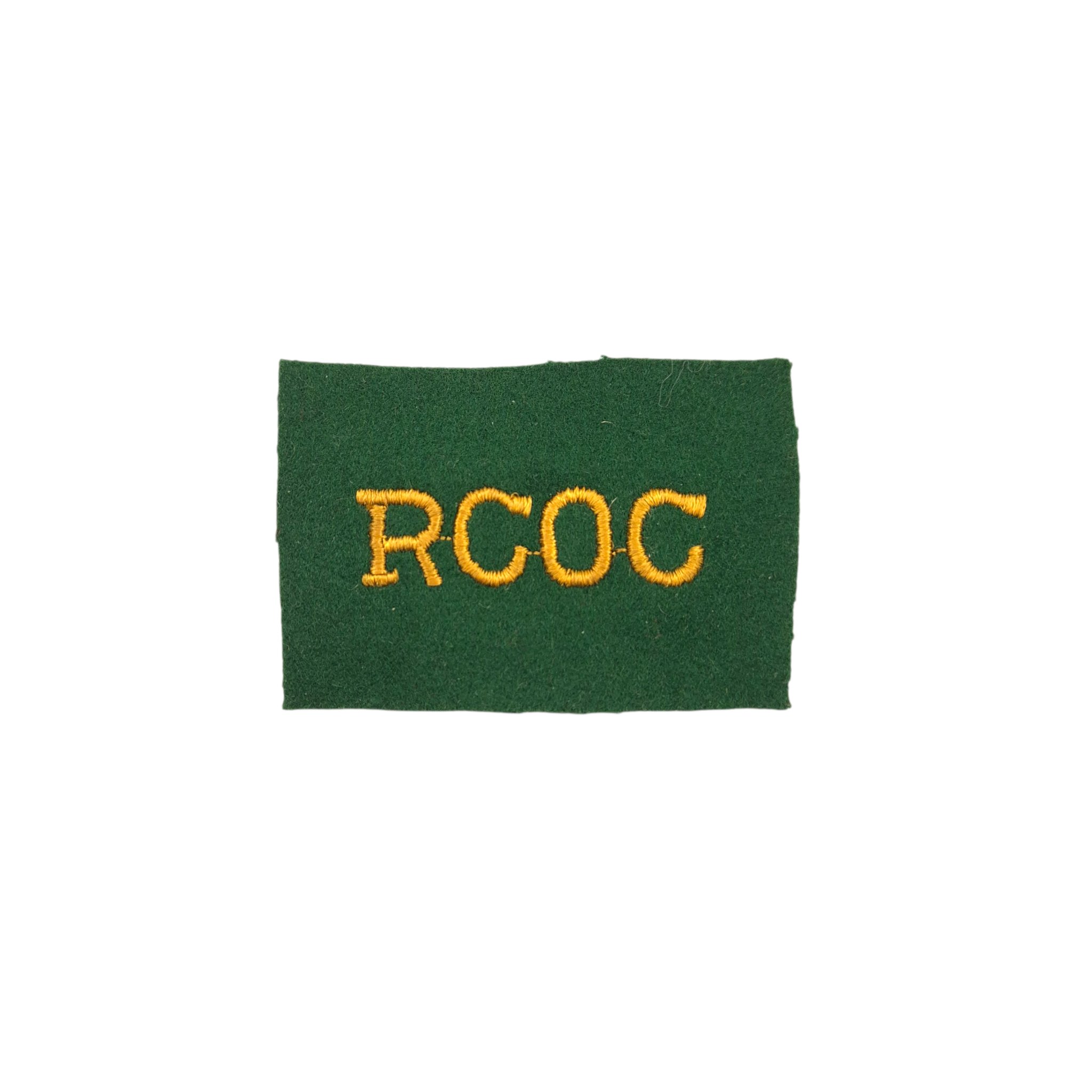 Original WWII Royal Canadian Ordnance Corps (RCOC), 4th Canadian Armoured Division embroidered formation patch. The patch shows glue residue on the reverse.