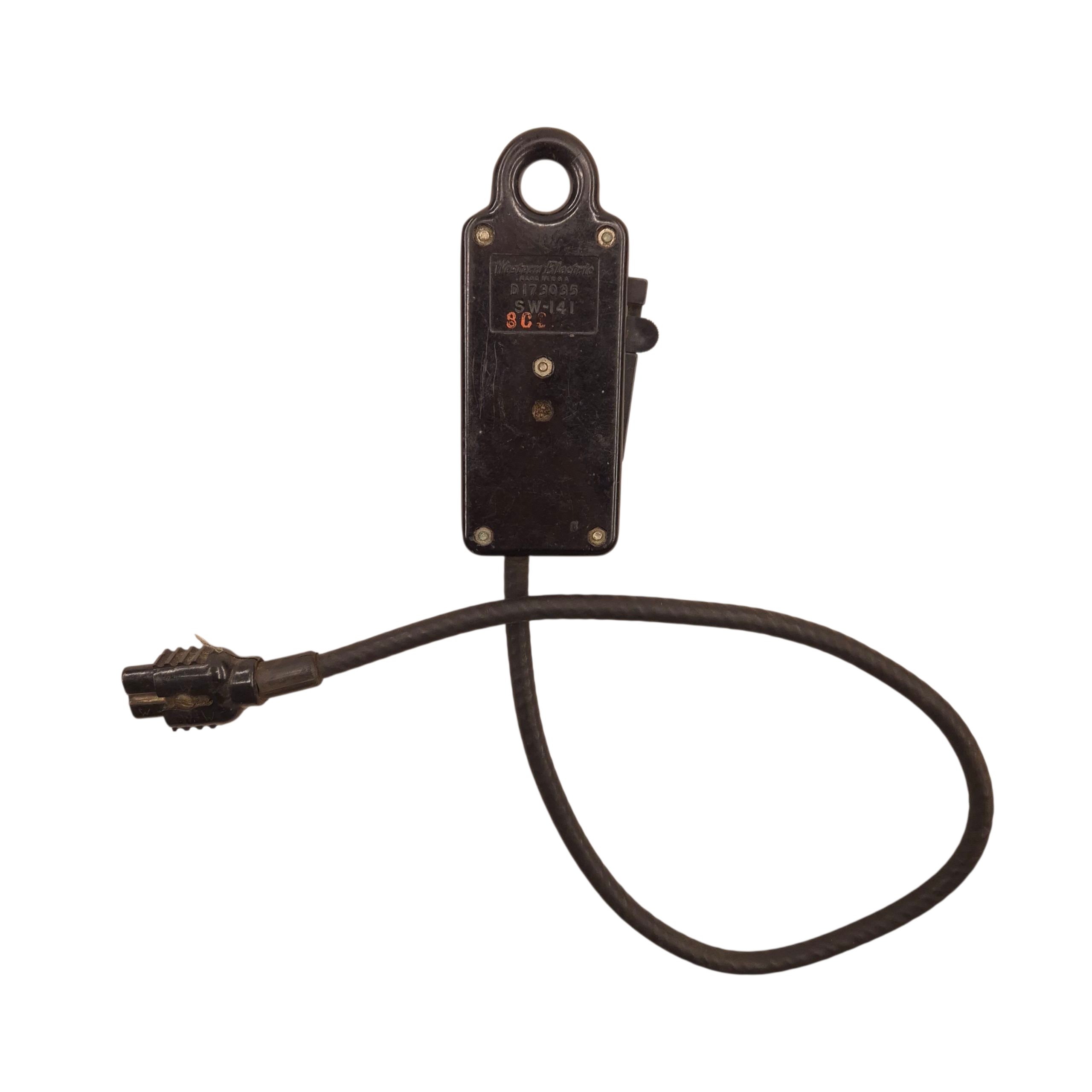 USAAF throatmicrophone extension cord with British plug, this was found with a British 1941 pattern Mae West. When early microphones had built-in press-to-talk switches, operation was simple. But with the introduction of throat mics, oxygen-mask mics, and integrated headsets like the H-46/UR, a separate method was needed to key the transmitter. This led to various external switches, often specific to certain aircraft. Early systems placed the switch on the cable leading to the interphone jack box; it clipped to the flight suit with a lanyard and was used to operate the interphone or key the HF/VHF transmitter.