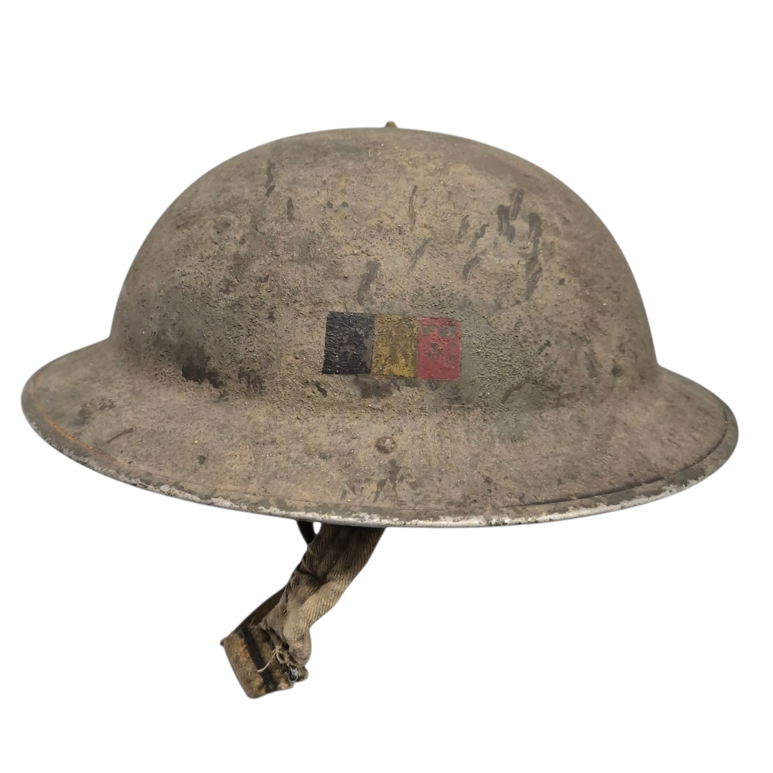 Original WWII Belgian 'Brigade Piron' MkII Helmet โ Named to Charles Pirard (Service Number 3265). This is a very fine and rare Belgian volunteer helmet, issued to a member of the famous Brigade Piron. This example is named to Charles Pirard, service number 3265, who served with the 2nd Motor Company, 2nd Battalion of the Belgian Brigade formed in the United Kingdom. He took part in the liberation campaign across France, Belgium and the Netherlands, serving throughout the unit's 1944โ1945 operations. The helmet retains its original Belgian tricolour flash, still present and in good condition. It features a period rough textured camouflage finish. Pirard's name and service number are clearly written on the chinstrap. The liner is manufactured by BMB and is dated 1939, making it an early and desirable example.A truly unique Belgian volunteer's helmet, issued to a man who joined Brigade Piron in the UK. Unfortunately, no further information is known about how Pirard came to Britain before enlisting, but the helmet remains an evocative and historically significant artifact of the Belgian liberation forces