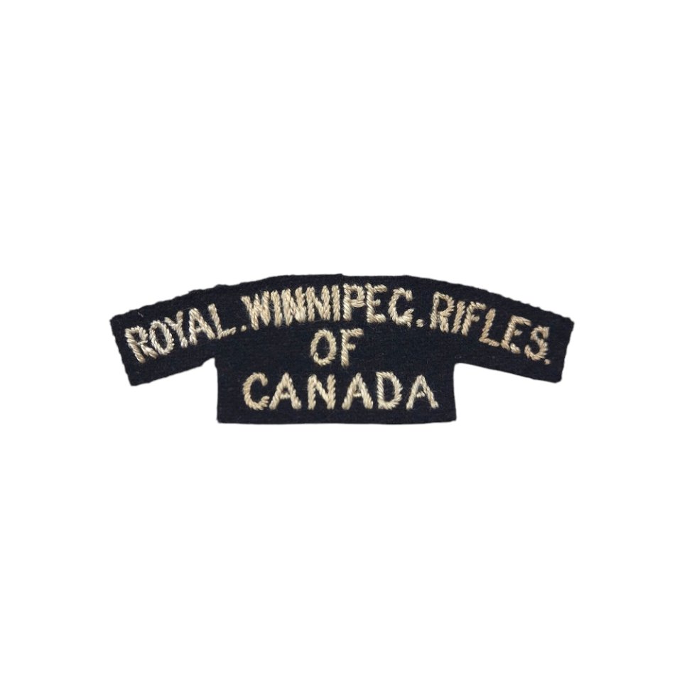 RARE original WWII Royal Winnipeg Rifles embroidered shoulder title. This is an early wartime English-made embroidered shoulder, most likely a Hobson & Sons production title for Canadian troops overseas is in excellent condition. Hard to find shoulder title.The Royal Winnipeg Rifles landed on Juno Beach on D-Day (June 6, 1944), they faced heavy resistance but secured their objectives. They fought in the Battle of Normandy, the liberation of France, Belgium, and the Netherlands. In 1945, they helped liberate Dutch towns and participated in the Battle of the Rhineland, advancing into Germany.