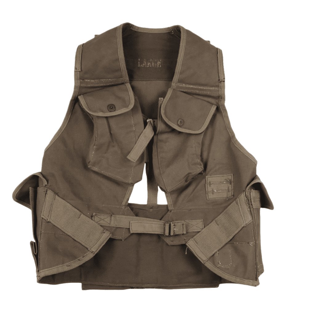 This is a VERY RARE WW2 Canadian issued Battle-Jerkin. The Battle Jerkin and was developed in 1942 by Colonel Rivers-MacPherson for the British Army. History has it that he disliked the Pattern 37 web gear in common use at the time and took the opportunity to design something he thought more efficient. It was issued to assault troops for the Normandy landings and was used widely by commando personnel in 1944-45. A Canadian pattern Battle Jerkin was designed shortly after the British model in 1942. Only 1500 were produced! With 1000 going to the UK to supply the Overseas Troops and 500 staying in Canada. The Battle Jerkins were used on D-Day by 3rd Divisions assault formations and in July 1944 by RCN Beach Commando. The Canadian made jerkins were of a similar cut and design to the British version although instead of wooden toggles and string loops the Canadian version uses US style 'Lift-the-Dot' fasteners. The US also copied the British Battle Jerkin and manufactured their own version of Assault Vest. This Battle Jerkin is in perfect condition. Nicely maker marked by ZL&TD and dated 1943. Size Large (L).This is the first time we are offering a scarce WW2 Canadian Battle Jerkin.