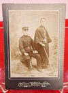 Original era photograph. Very clear image of two men, one wearing the dark blue army uniform and the other in traditional Japanese dress. Card mount measures 4x5.5 inches.
