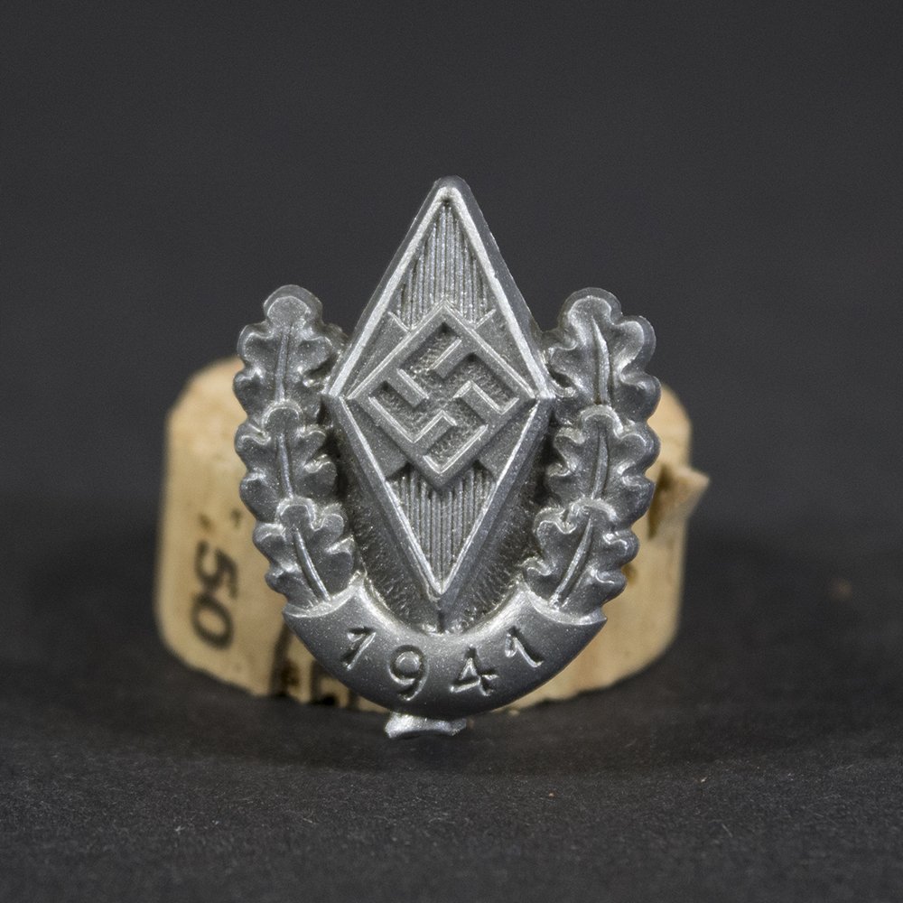 About the item: This is a genuine Hitler-Jugend Siegernadel, awarded to participants of the 1941 Hitler Youth sports festivals. The pin remains in nice original condition About the Hitler Youth: The Hitler Youth (German: Hitlerjugend, HJ) was the official youth organization of the Nazi Party, established in 1922. In July 1926, it was officially named Hitler-Jugend, Bund deutscher Arbeiterjugend (Hitler Youth, League of German Worker Youth). From 1936 to 1945, the Hitler Youth was the only official boys' youth group in Nazi Germany, although the League of German Girls (BDM) served as its female branch. The organization included two main divisions: the Hitler Youth for boys aged 14 to 18, and the German Youngsters in the Hitler Youth (Deutsches Jungvolk in der Hitler Jugend, DJ/DJV) for boys aged 10 to 13. The program had paramilitary aspects and emphasized Nazi ideology, physical training, and loyalty to Hitler, playing a central role in shaping German youth under the Third Reich. Click HERE for more info about the Hitler Youth.