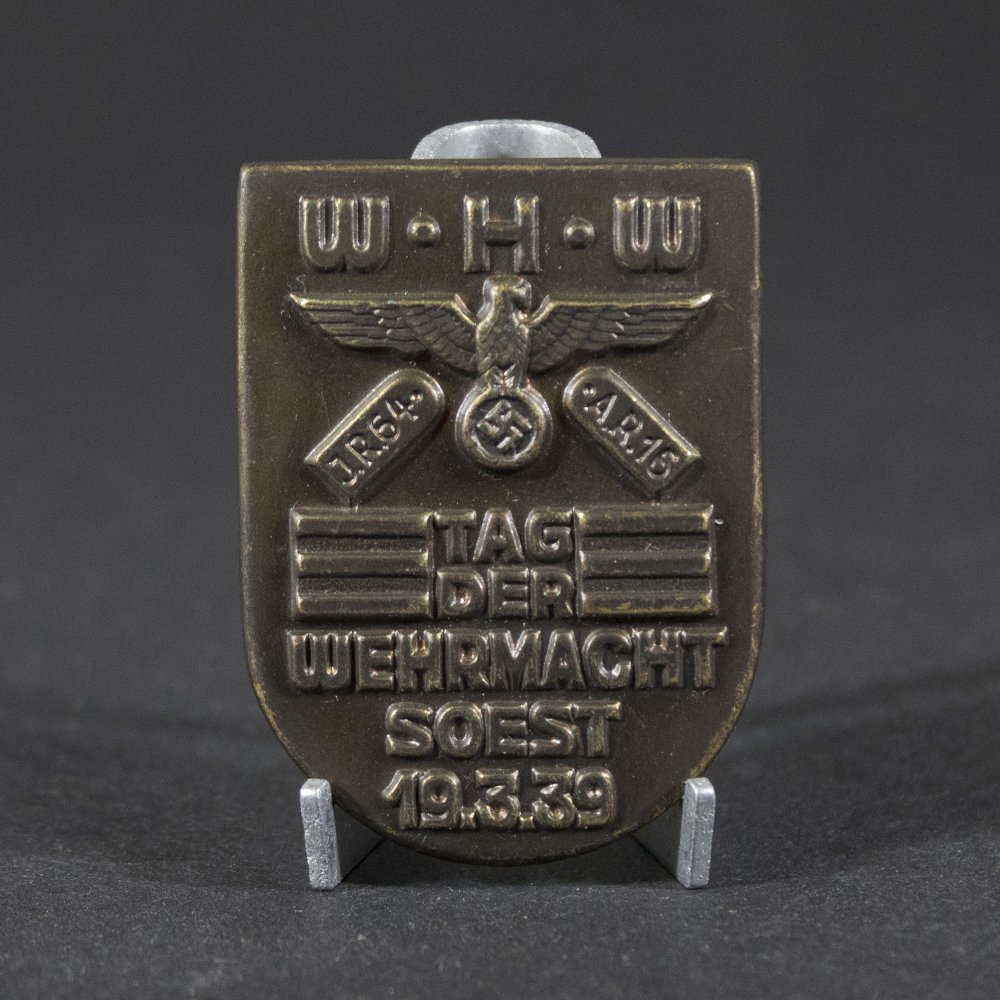 About the item: Very nice and in good condition winterhilfswerk tinnie 'tag der wehrmacht soest 19.3.39' About the Winterhilfswerk: The Winterhilfswerk des Deutschen Volkes (translated as Winter Relief of the German People), often referred to by its abbreviation Winterhilfswerk (WHW), was an annual fundraising campaign conducted by the National Socialist People's Welfare (Nationalsozialistische Volkswohlfahrt, or NSV). Founded in 1933, the WHW served as a significant funding source for NSV activities and was the second largest mass organisation in Nazi Germany. While donations were officially voluntary, in practice German citizens were expected to give, facing considerable social pressure to do so. Click HERE for more info about the Winterhilfswerk