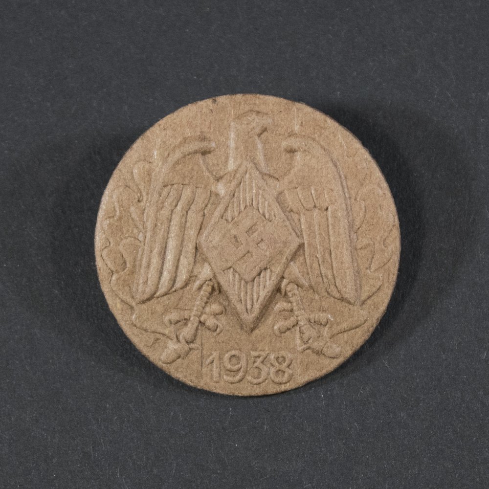 About the item: Nice and in good condition Hitler Youth Pressed Paper Day Badge (1938) About the Hitler Youth: The Hitler Youth (German: Hitlerjugend, HJ) was the official youth organization of the Nazi Party, established in 1922. In July 1926, it was officially named Hitler-Jugend, Bund deutscher Arbeiterjugend (Hitler Youth, League of German Worker Youth). From 1936 to 1945, the Hitler Youth was the only official boys' youth group in Nazi Germany, although the League of German Girls (BDM) served as its female branch. The organization included two main divisions: the Hitler Youth for boys aged 14 to 18, and the German Youngsters in the Hitler Youth (Deutsches Jungvolk in der Hitler Jugend, DJ/DJV) for boys aged 10 to 13. The program had paramilitary aspects and emphasized Nazi ideology, physical training, and loyalty to Hitler, playing a central role in shaping German youth under the Third Reich. Click HERE for more info about the Hitler Youth.