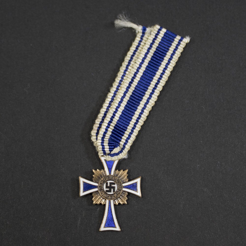 About the item: Very nice and still in a very good condition bronze Mothers Cross miniature. About the Mothers Cross: The Mother's Cross (Ehrenkreuz der Deutschen Mutter) was a state decoration introduced on December 16, 1938, by Adolf Hitler. It was part of a broader Nazi strategy to reshape German society according to fascist ideals, particularly in terms of population growth, racial purity, and gender roles. Though presented as a reward for motherhood, the decoration was deeply embedded in the regime's racial and ideological goals. Ideological Foundations The Mother's Cross was not merely a token of appreciation for mothers—it was a propaganda tool designed to promote the Nazi ideal of the 'Aryan' woman as a mother and homemaker. The regime viewed women primarily as bearers of the next generation of racially pure Germans, and their role was strictly confined to the domestic sphere. The Nazi slogan 'Kinder, Küche, Kirche' (Children, Kitchen, Church) encapsulated this worldview. The award was part of a larger demographic policy aimed at reversing Germany's declining birthrate and preparing for future expansion. Hitler and his advisors believed that a strong, racially pure population was essential for the success of the Third Reich and its long-term goals, including Lebensraum (living space) in Eastern Europe. Click HERE for more info about the Mothers Cross