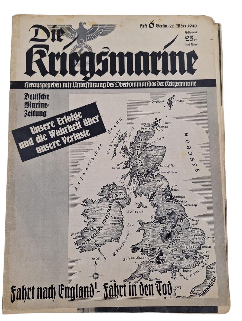 very nice die kriegsmarine nr March 20, 1940 Die Kriegsmarine' magazine was the official magazine of the German Navy during WWII and was published twice monthlyto serve german reich propaganda purposevery nice condition with a nice cover