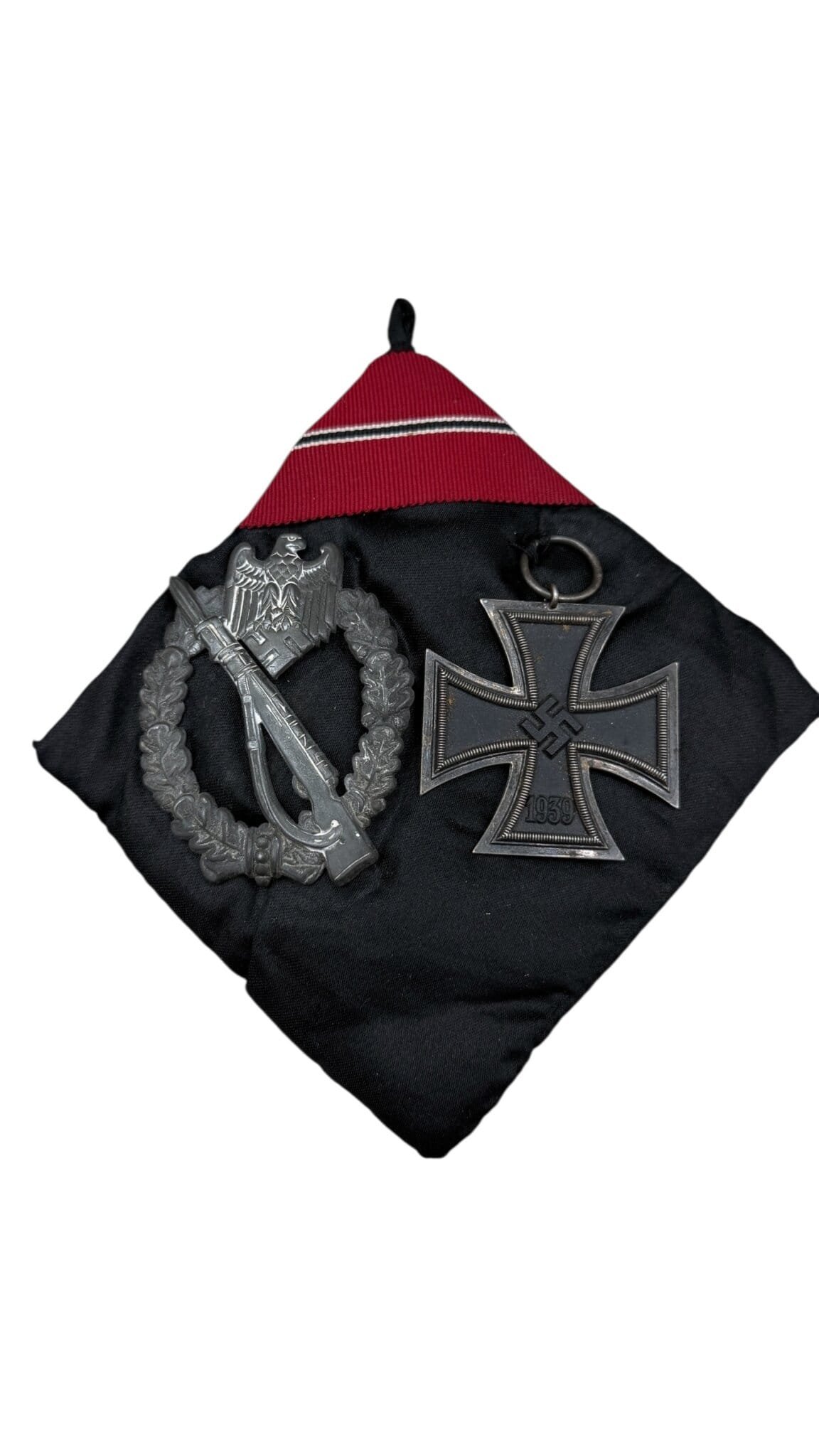 WW2 German Ehrenkissen Display with EK2 Iron Cross & Infantry Assault Badge