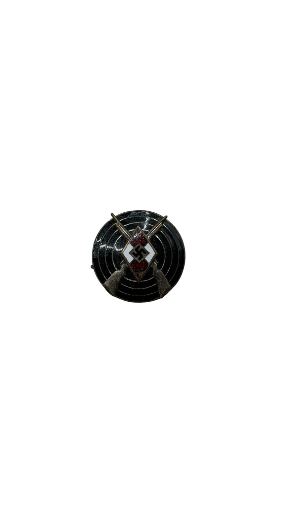 This originalHitler Youth shooting badge (Schiessauszeichnung)from theHitler YouthisRZM marked M1/77, indicating manufacture by an officially licensed maker during the WWII period.The badge remains anice original example, showing typical age-related wear while retaining good overall detail. Shooting badges were awarded within the Hitler Youth organization to members who demonstratedmarksmanship skills during training.A collectible piece ofWWII youth organization insignia, ideal for collectors ofHitler Youth memorabilia, badges, or period awards.