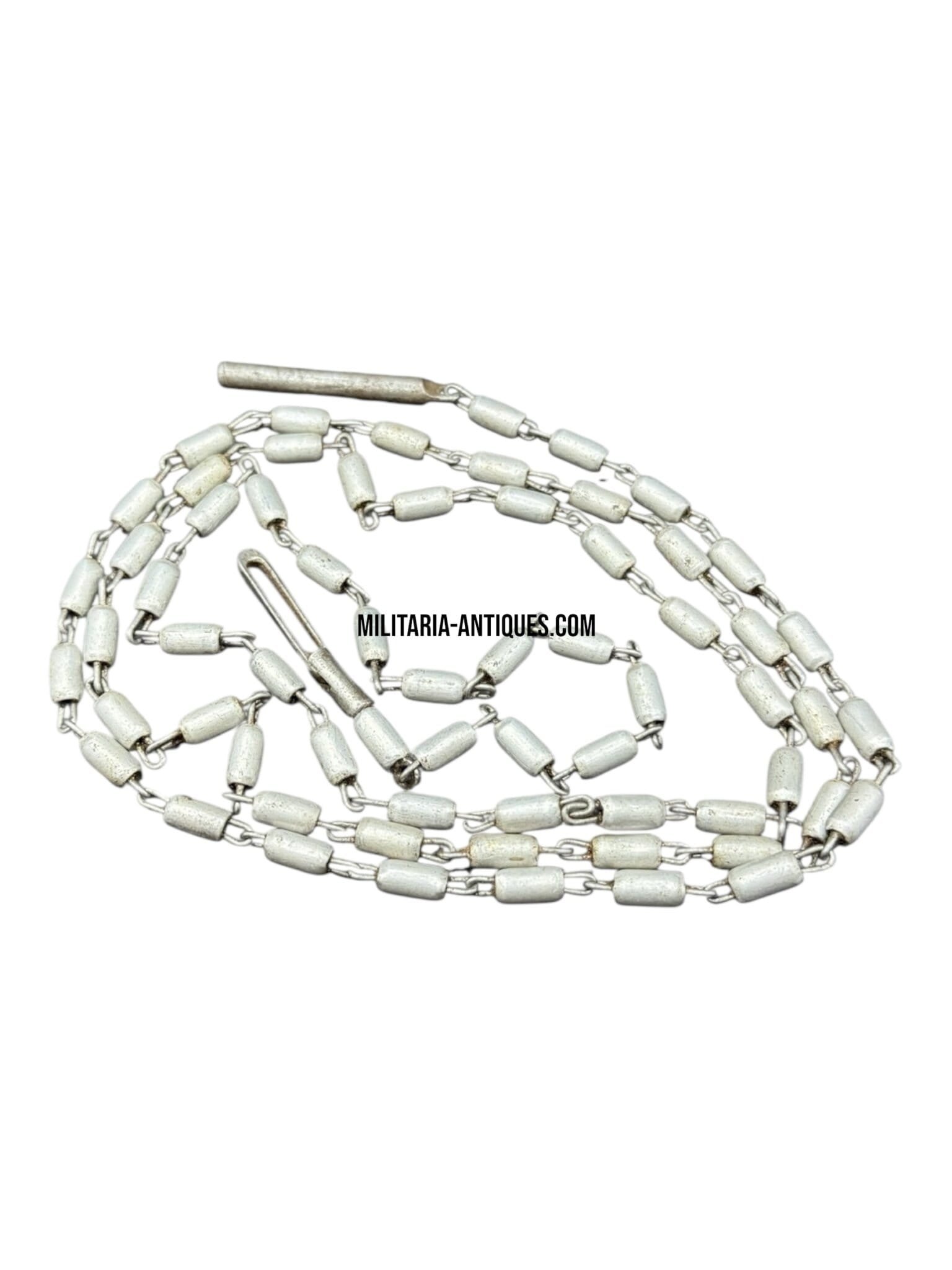 Originalrare RG34 cleaning chain, .22 caliber variant, designed for use with the standard German K98 cleaning kit (Reinigungsgerät 34). This scarce version was specifically intended for smaller-caliber training rifles and is much harder to find than the regular K98 chain. Constructed of steel links with the pull-through weight still intact, this example remains complete and in very good condition. A highly desirable accessory for completing an advanced RG34 kit or for collectors of rare German small arms accessories.