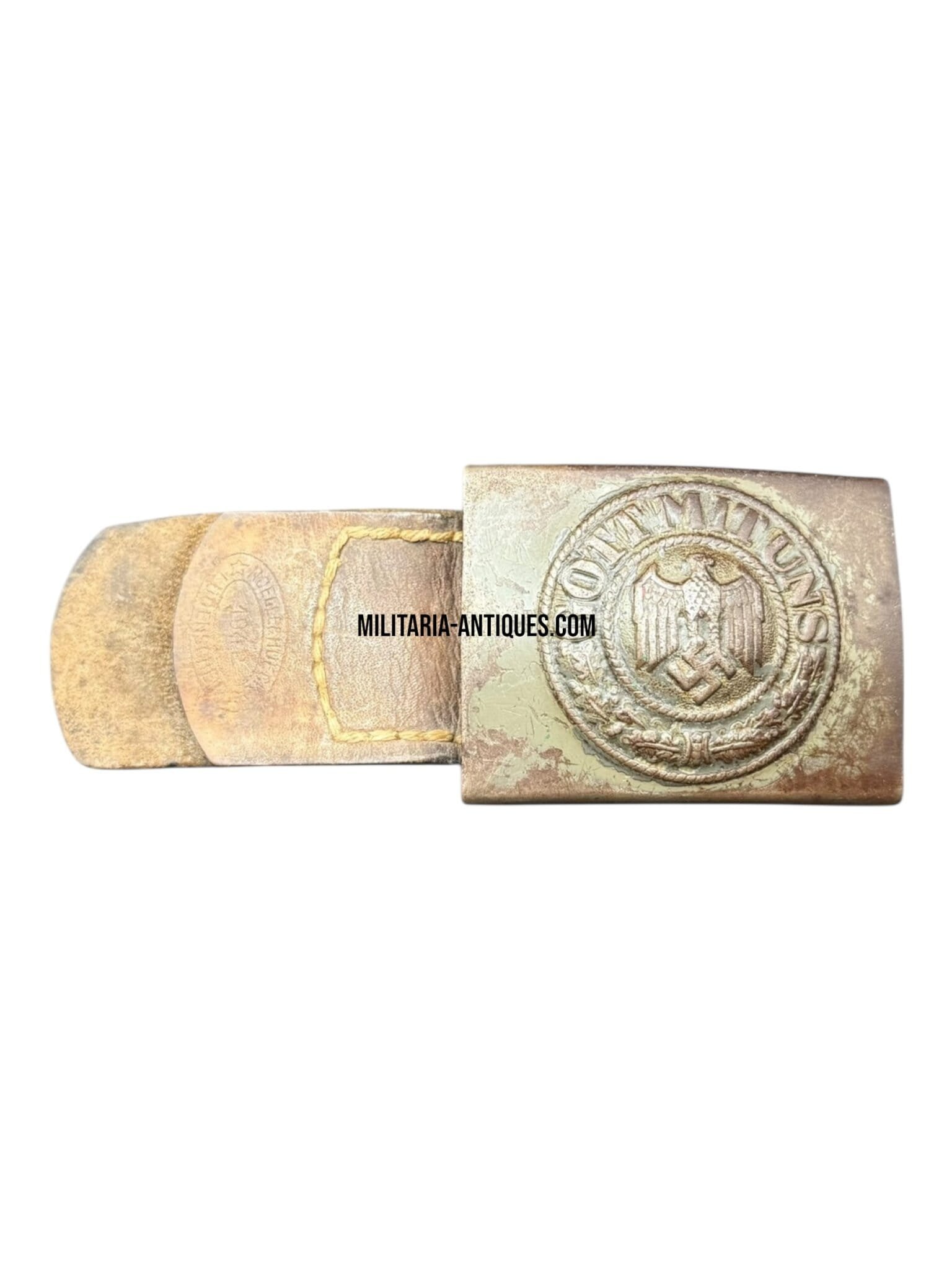 Original WWII German Heer belt buckle, steel version, dated 1942. This example retains its leather tab, clearly stamped with maker and year. The buckle shows honest wear consistent with service use A fine and complete example for any collector of WWII German field gear.