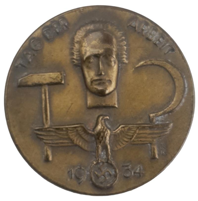in very nice Original tag der arbeit tinnie 1934there is a pin on the back but nice for display