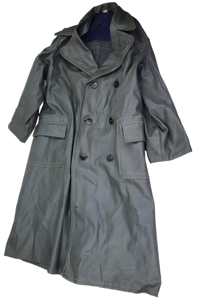 in a very nice used condition a leather Kriegsmarine overcoat the inner lining is made of herringbone fabric. it has no marker or date stamp in a very nicer used condition