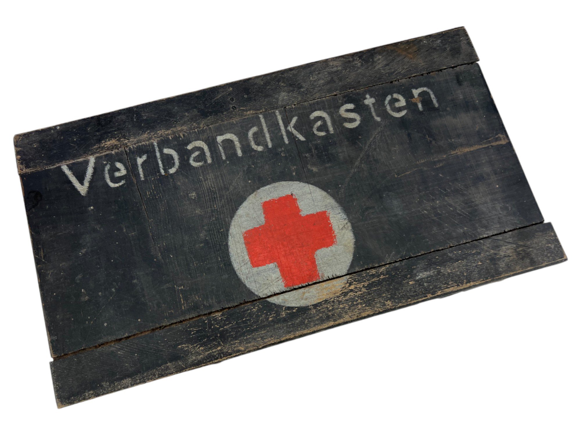 Blue wooden verbandkasten in good condition. near full paint and nice marked