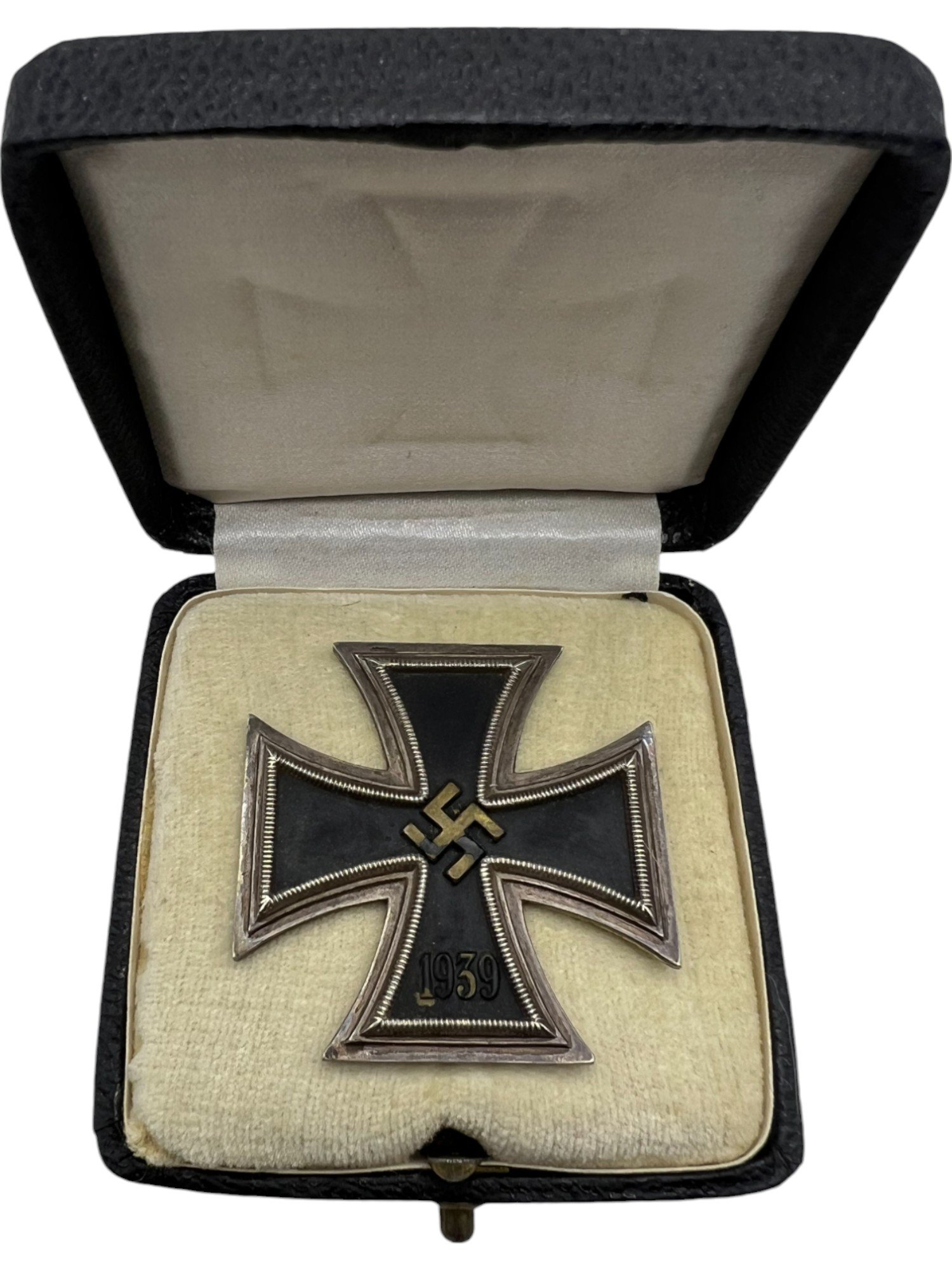 Cased 1939 Iron Cross 1st Class by Souval. Non Magnetic Core – niece used ek1 with matching case.