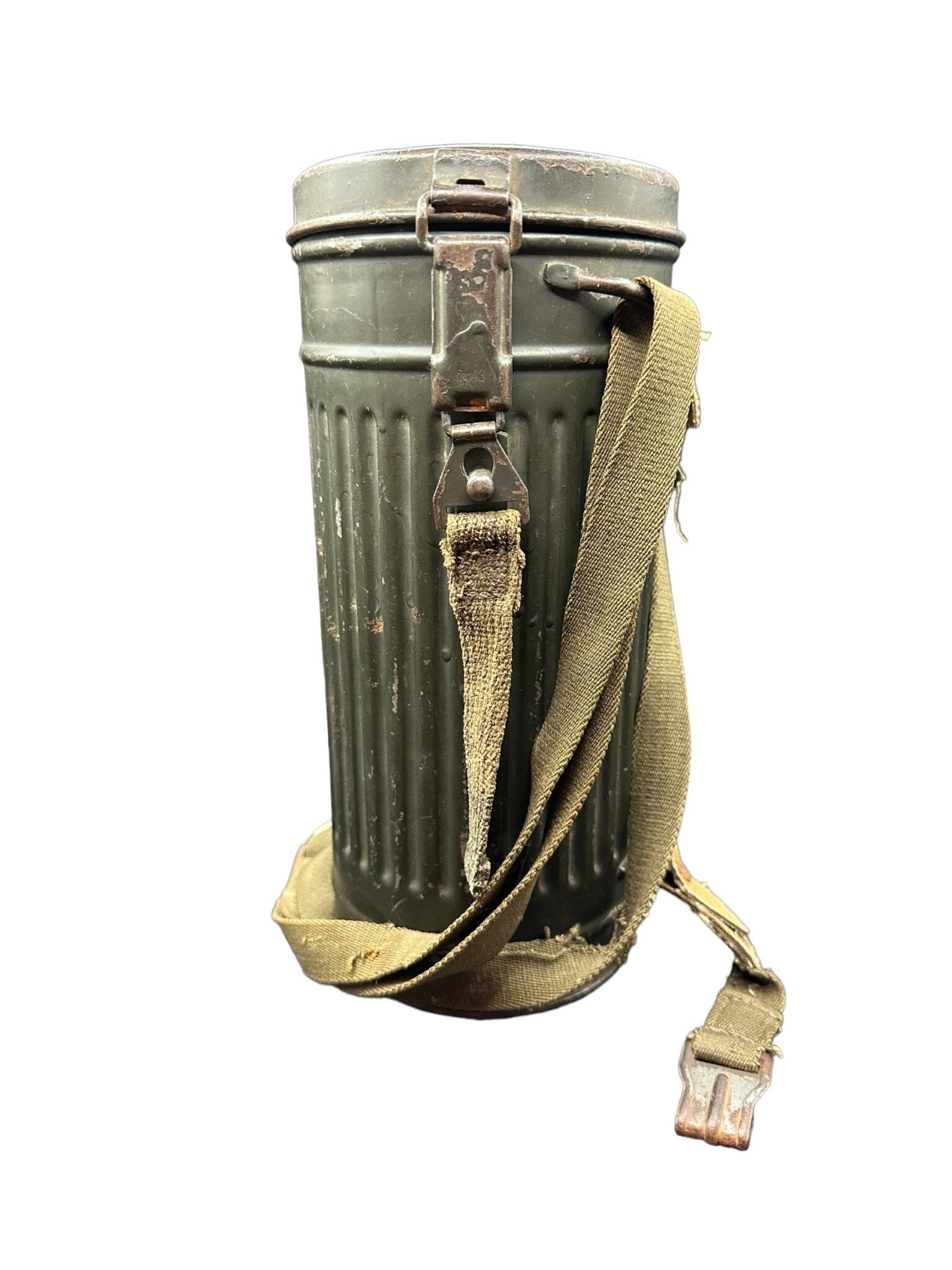 Top gas mask! very nice canister from the Maker EF that can also be found on knife kits but also of course from the helmets, top piece to go with your helmet so. Another nice detail is that this one has tan straps which can also be seen in the book Achtung Achtung Gasalarm! by Giancarlo Persic on the long strap you can even still see an ink mark. A piece not to be missed in your collection.