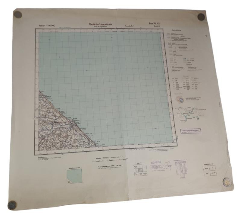 ïn very nice condition a wehrmacht map off 'rimini italy 'with the cities ca torsani .rimini .bellaria with the text 'deutsche heereskarte 'there are some cracks in very nice used condition