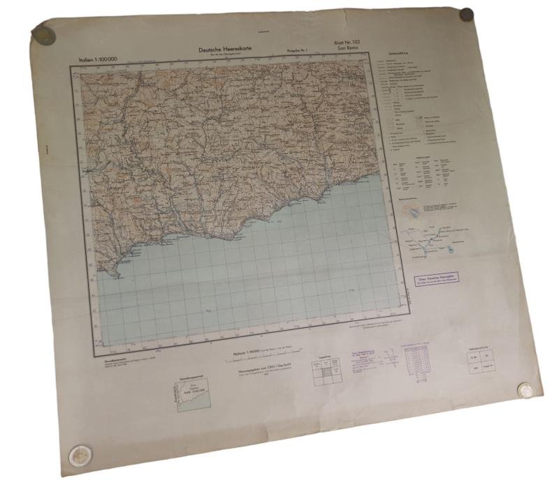 ïn very nice condition a wehrmacht map off 'san remo'with the cities castel vittorio prinaldo.san remo .with the text 'deutsche heereskarte 'there are some cracks in very nice used condition
