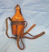 Original era manufacture. An early aluminum bodied canteen developed under the reign of Emperor Meiji and issued with minor changes (canvas instead of leather suspension) into the early 1930's. Cylindrical canteen body with a brown overpaint and brown leather suspension harness and strap. The canteen is fairly complete except for the cap securing strap which is missing about 4 inches of its length. The strap buckle is intact, needs a little stitch repair on the reverse of the harness.