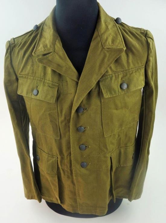 in very nice used condition a wehrmacht m43 dak tropical tunic first they were used for africa corps only later they were also issued to western europe units toit is dated wb 44 it is size marked with 'chestsize is 96 cm 'The place where the eagle once sat is still clearly visible beatiful in almost mint condition