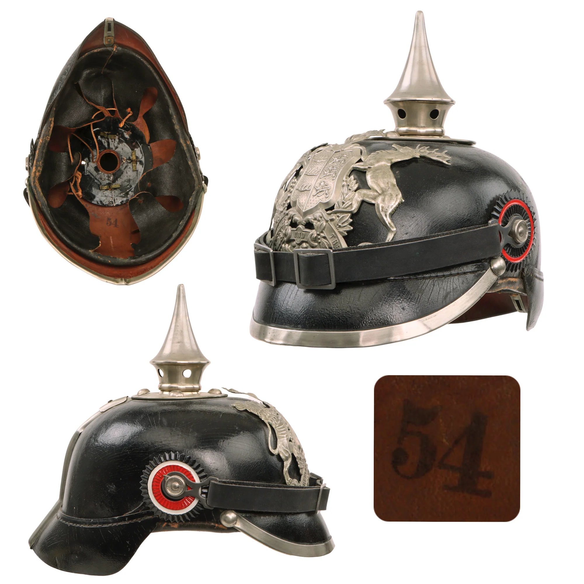 Original German WWI Kingdom of Württemberg M1891 Silver Pioneer EM/NCO Pickelhaube Spiked Helmet with Original Cockades - Size 54