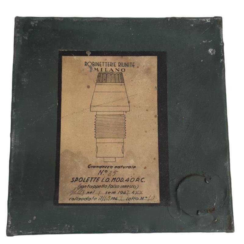 in a very nice condition Italian igniter box for 25 ignitors. with a very nice label on the fronthe is dated 1941 Measurements are 17,5 x 17,5 x 8,5 cm. in a very nice used condition