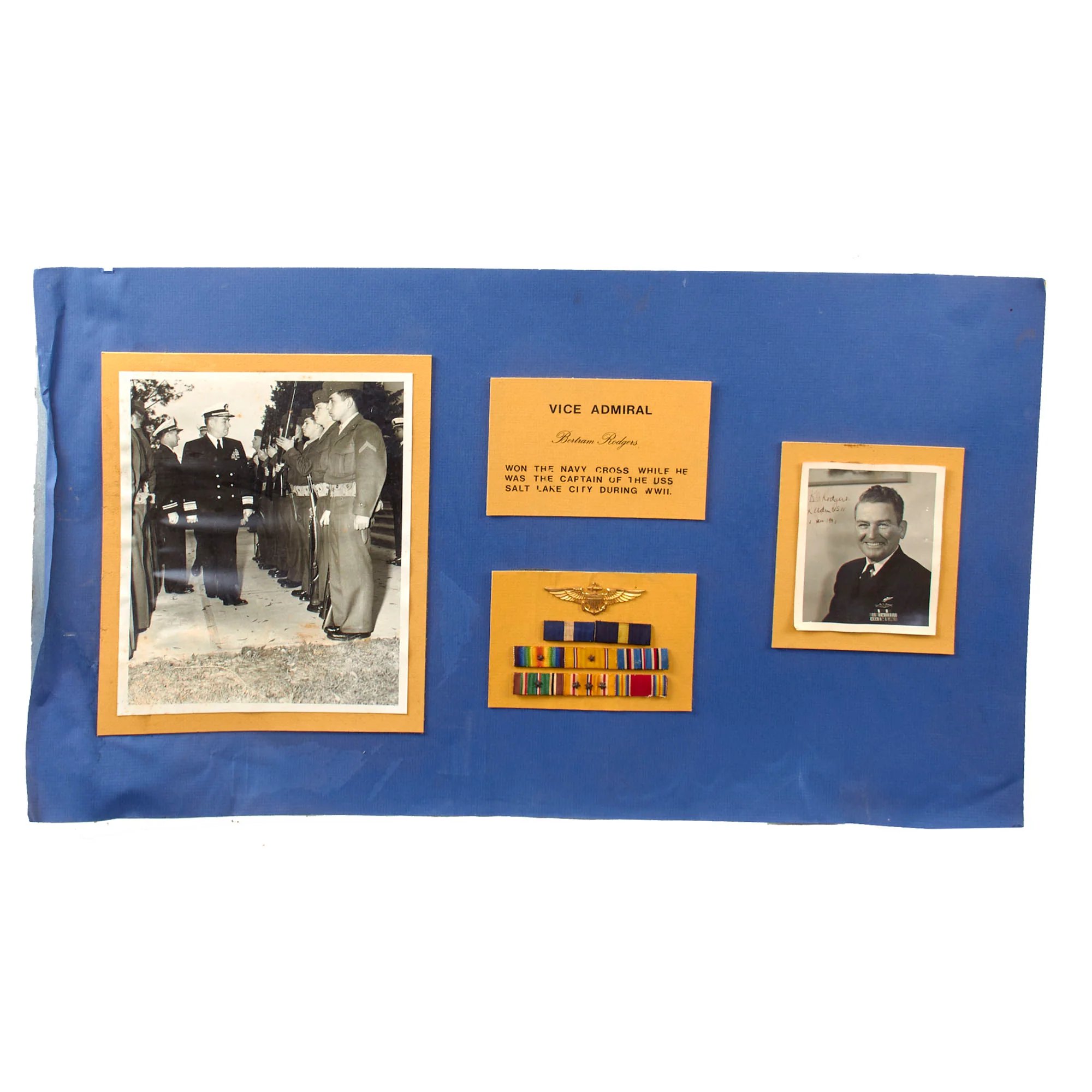 Original U.S. WWII Vice Admiral Bertram Rodgers Mounted Ribbon Bar & Pilot's Wings with Photographs for Framing - 16 x 27 ½'