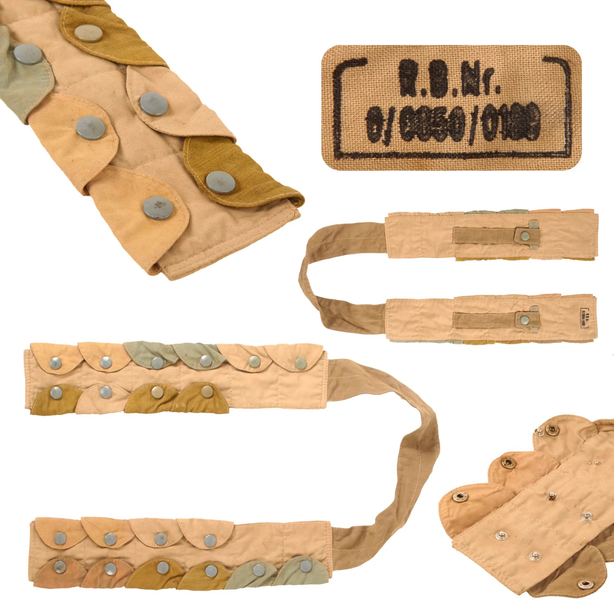 Original Rare German WWII Late War Luftwaffe Multi-Color Fallschirmjäger Paratrooper Ammo Bandolier Made from Depot Scraps - RBNr. Marked