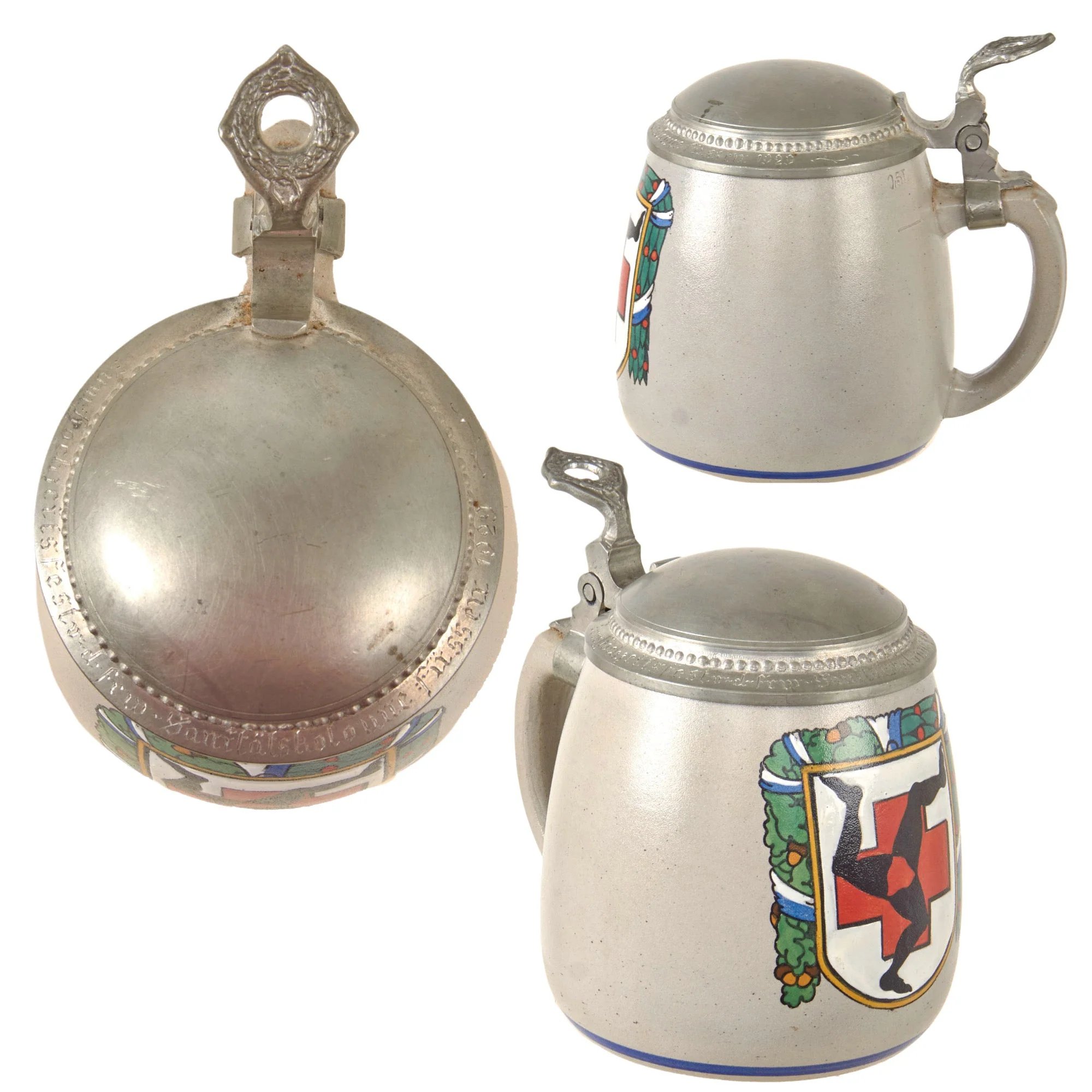 Original German Pre-WWII Reichswehr Wedding Celebration Lidded Beer Stein with Bavarian Füssen Medical Detachment Insignia & Medic Dedication on Lid - Dated 1929