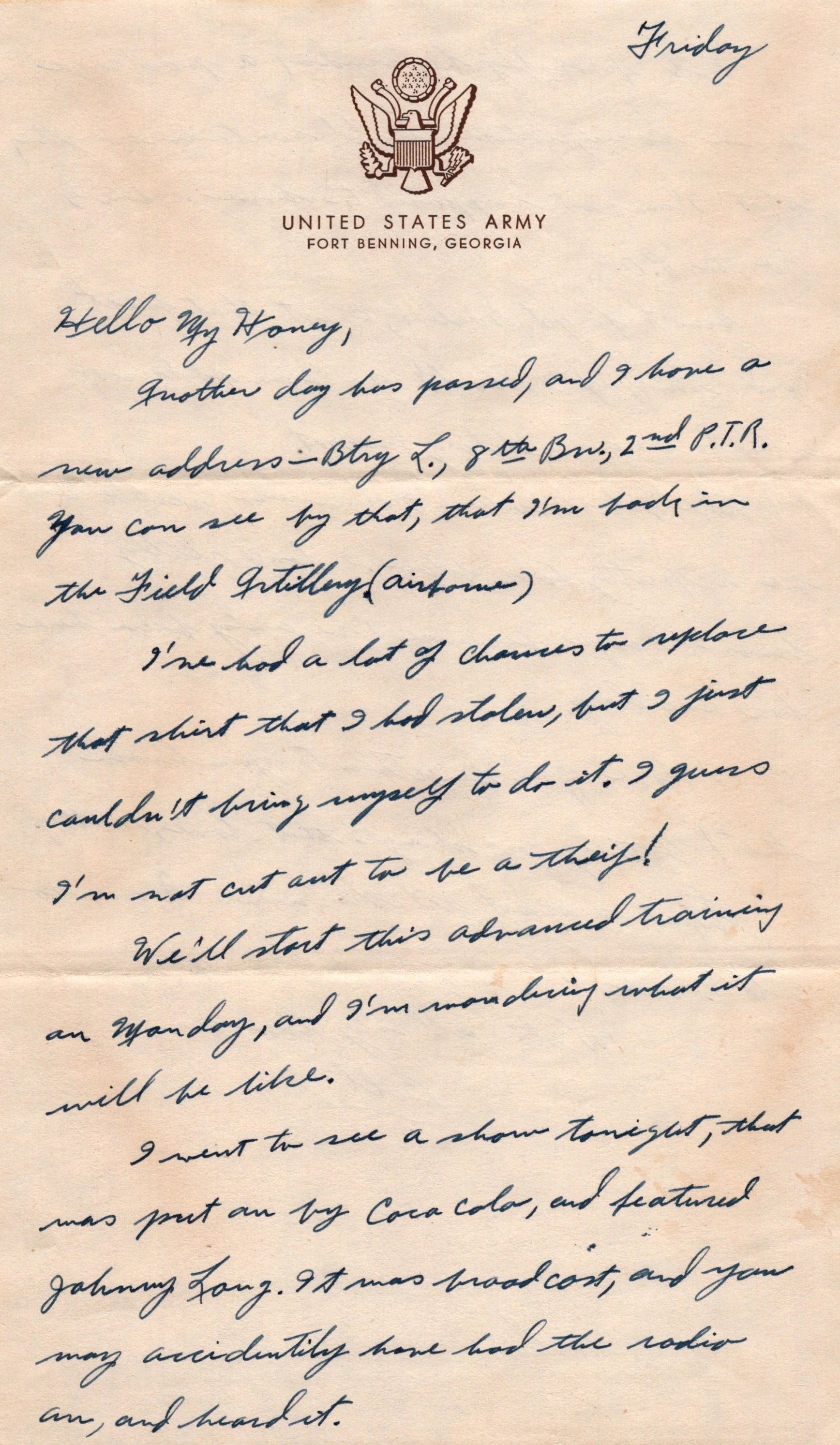 Original U.S. WWII Parachute Training Regiment Letter Lot - Pvt Merlyn Williams, 2th PTR