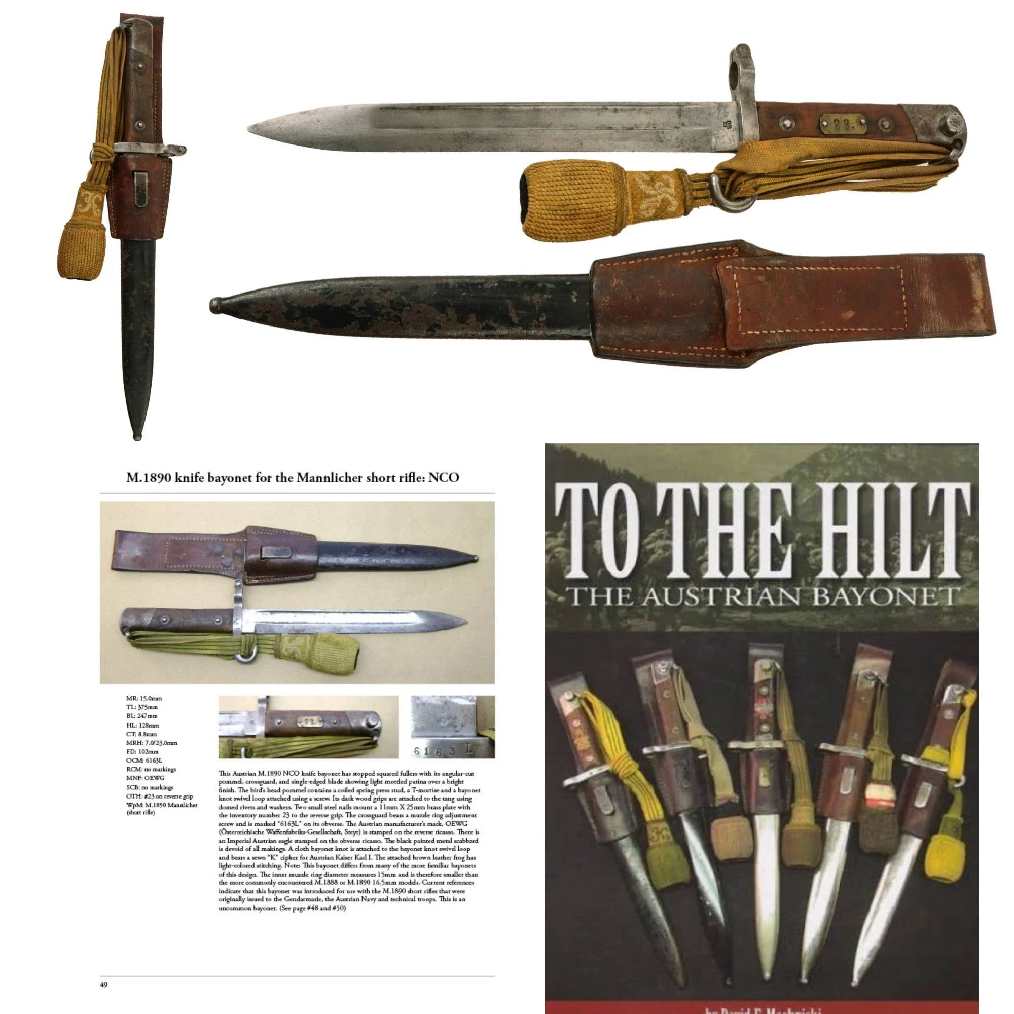 Original Austrian WWI Mannlicher M1890 NCO Bayonet by ŒWG Steyr with Hook Quillon, Scabbard, Frog & Troddle Knot - Featured in To The Hilt The Austrian Bayonet by David F. Machnicki