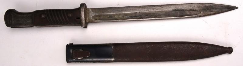Very used condition A K98 bajonet with no matching numbers on the bayo it is no longer readable and the scabbard with '1866' made by 'f.herdera.sn .' and dated with 1940 in nice used conditionplease ask for shipping costs per item. it can differ per package / paypal payments is also possible