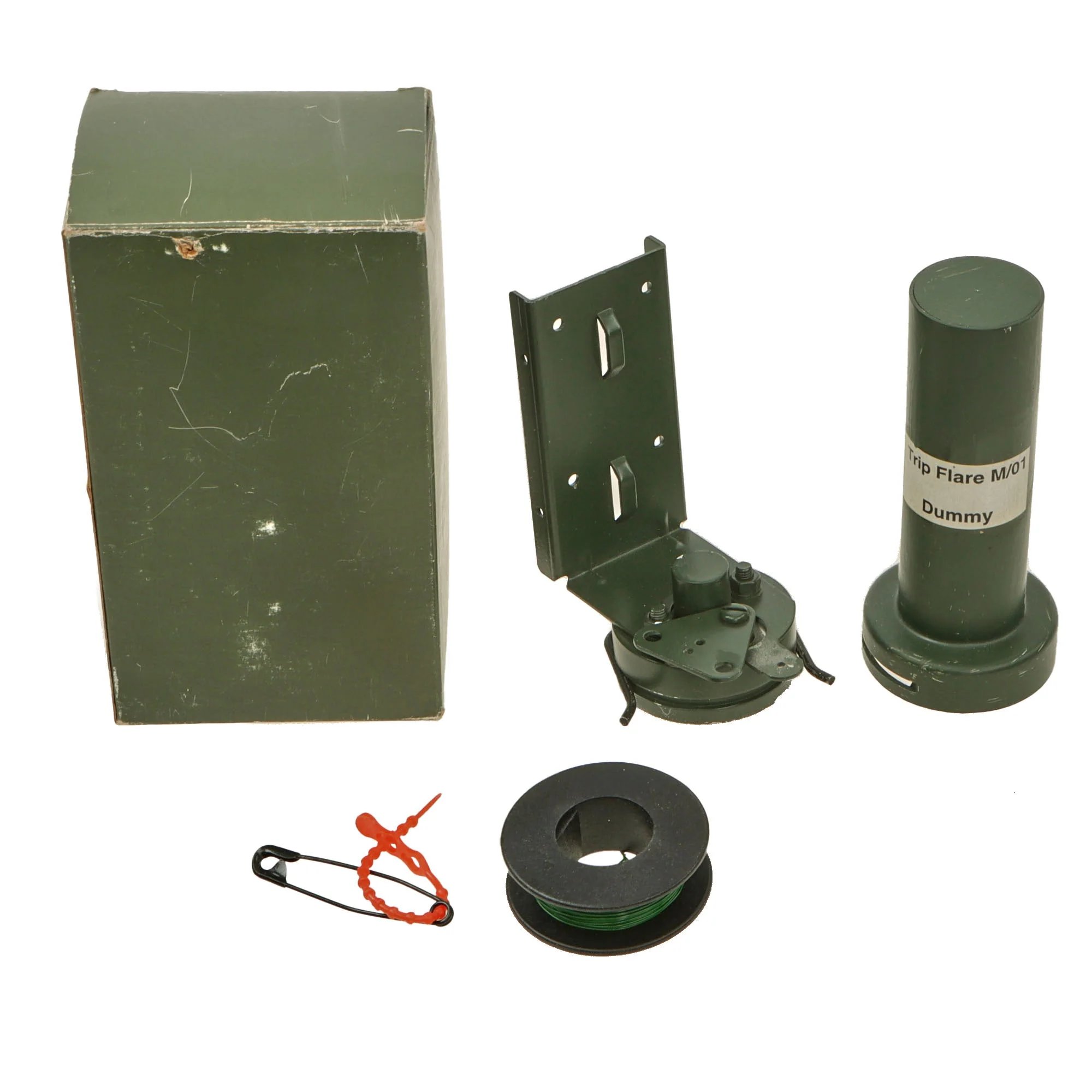 Item DescriptionOriginal Item. Only One Available. This is a great Trip Flare M/01 made as a sample or trainer by Rheinmetall. The purpose of the flare is to reveal the approach of enemy troops. The flare has a label readingTrip Flare M/01 / Dummy. The flare attaches to the included frame, and comes with its original box with accessories.Unloaded or dummy grenades, artillery shell casings, and similar devices, which are cut or drilled in an BATF-approved manner so that they cannot be used as ammunition components for destructive devices, are NOT considered NFA weapons. This example is in total compliance and is totally inert. NOT AVAILABLE FOR EXPORT.The box retains accessories including a roll of wire and a safety pin on a zip tag.. The box measures5 x 2 ¾ x 3'.A good example, ready for further research and display.Shipping RestrictionsThis product is not available for international shipping.Payment OptionsNot eligible for payment with Paypal or AmazonLegal InformationTotally inert, cannot be converted to an explosive devise, not available for export.This item is completely legal within the USA. International Military Antiques, Inc observes all Federal, State and Local laws. Everything for sale on ima-usa.com is completely legal to own, trade, transport and sell within the United States of America. Every display machine gun and machine gun parts set and gun sold by IMA, Inc is engineered to be inoperable according to guidelines provided by the US Bureau of Alcohol, Tobacco, Firearms and Explosives (BATF)