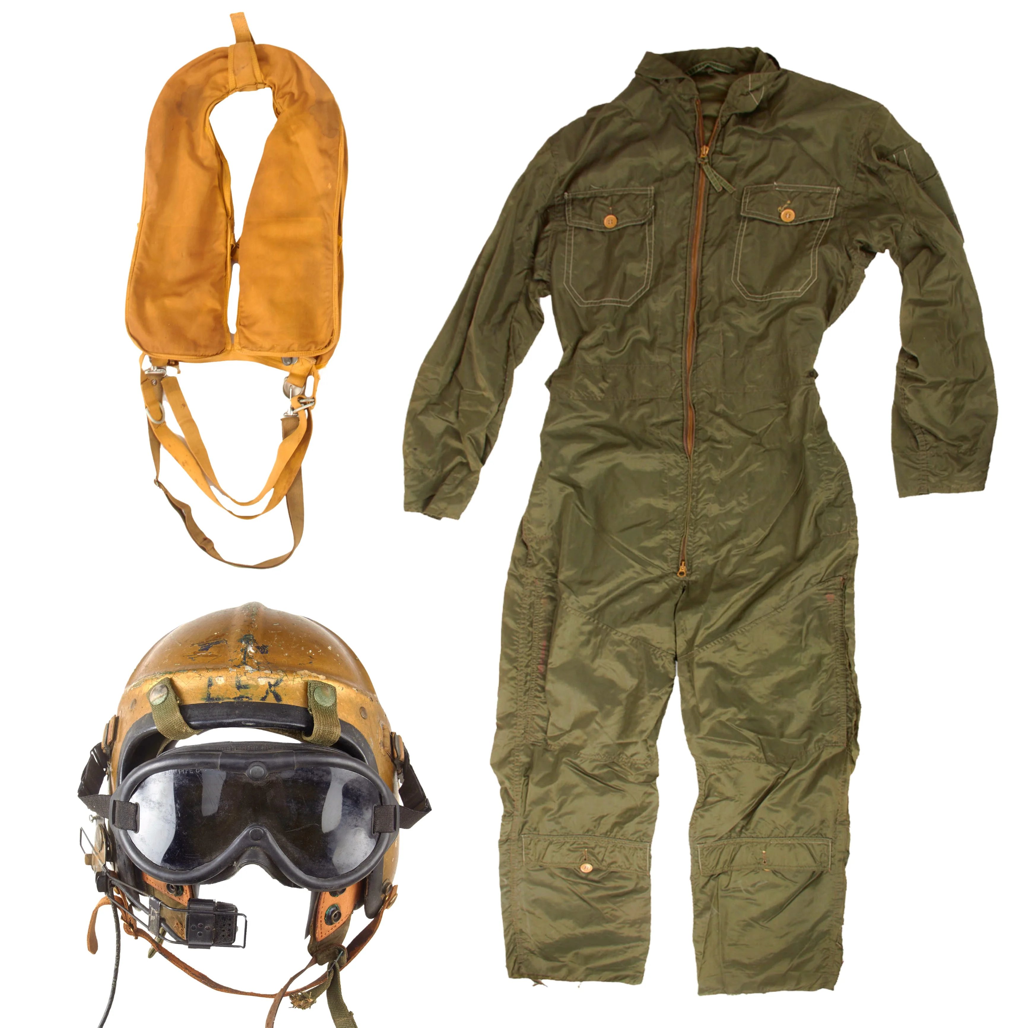 Original U.S. Korean War Navy Pilot's H4 Helmet & Nylon Flightsuit Set with Interior H4 Helmet & Mae Vest Flotation Vest