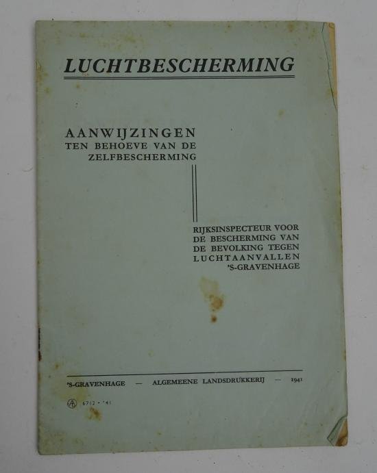 in a used condition a dutch ww2 air protection bookletit has 14 pages and it is dated 1941 and made in the hague very nice for display