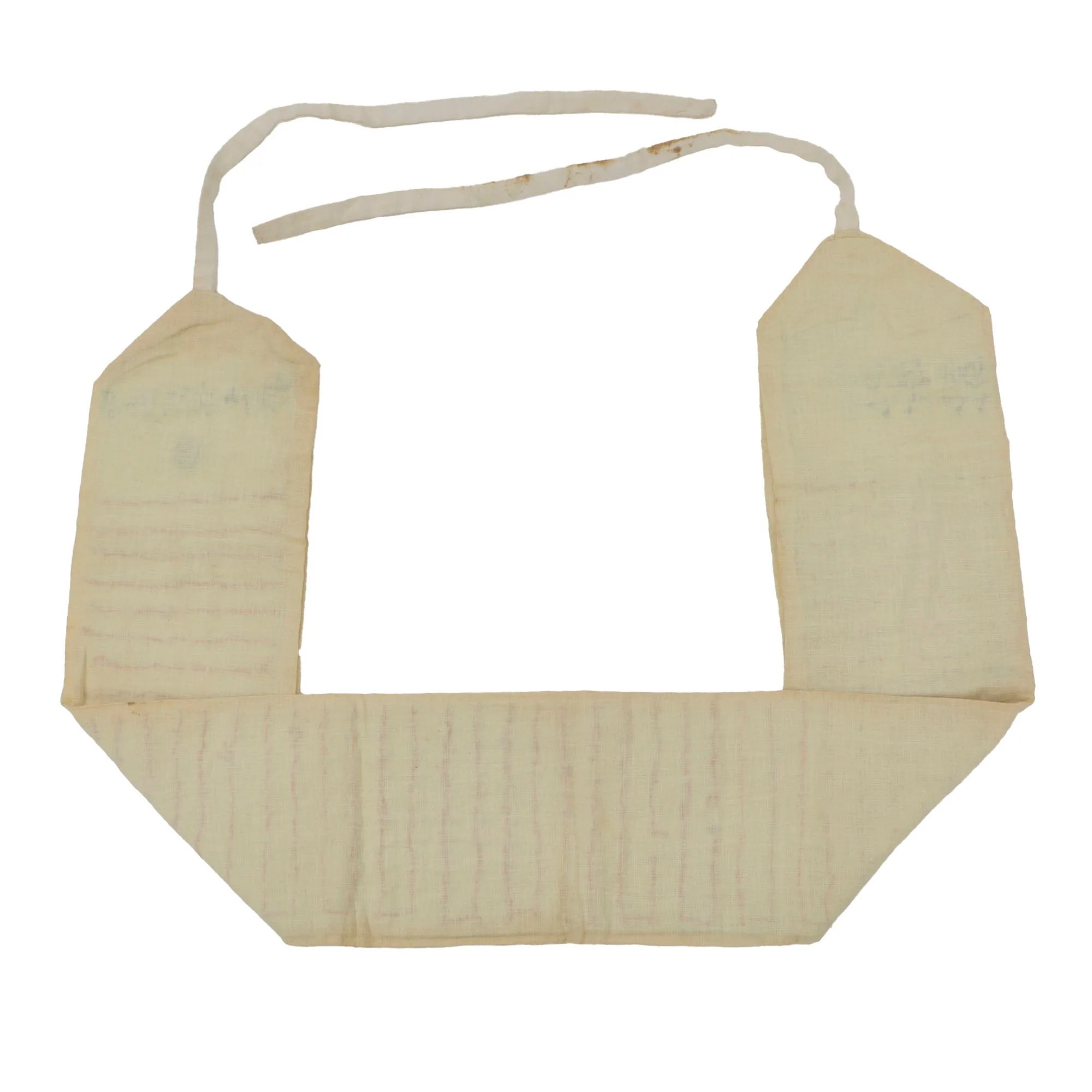 Item DescriptionOriginal Item: One-of-a-kind. A Senninbari (千人針 thousand-person-stitches) or One-thousand stitch is a strip of cloth that measures approximately 15 cm (6 in) high and up to 90–120 cm (3–4 ft) or more in length. Each end of the belt (sash) may or may not have strings, snaps or buttons that allow it to be fastened about the waist. Examples that lack these were often tucked into the waist. Other variations were never worn but may have been folded and placed inside helmet liners, pockets or packs. Senninbari were decorated with 1000 knots or stitches, and each stitch was normally made by a different woman. Senninbari were given as an amulet by women to soldiers on their way to war as a part of the Shinto culture of Imperial Japan.This wonderful example measures a very long 46 inches by 6 inches and is definitely the type worn around the waist. It has a 17 1/2 inch long strap on each side, to be used to secure it. The Senninbari is contained in its outer cover but underneath one can see the stitching designs and Kanji inside, something we rarely see on these belts. There is a coin stitched on one end.The belt is constructed of cotton. There is some staining as well as overall age toning. However it still displays very nicely.Definitely one of the more interesting Senninbari we have had. Ready to display!Construction, and typesSenninbari were most commonly made from white cloth with 1000 red stitches added. This is seen as a very lucky color combination. Yellow, red, and green cloth were also used with varying colored threads (yellow-gold, red, white, black, green, etc.) applied. The stitches were usually arranged in multiple rows but might also be placed in patterns creating images of flags, patriotic slogans or tigers. The most common slogan seen was bu-un cho-kyu or 'eternal good luck in war'. Tigers as stitched or painted artwork were popularly portrayed on senninbari since they were known to be able to roam far away from home and then return safely.Senninbari took various forms and were not just made as belts. Some forms included hachimaki (headbands), belts, vests, and caps. The rarest forms of senninbari take the form of good luck flags. Senninbari were most commonly made to be worn around the waist. These examples are known as senninbari-haramaki (a haramaki or abdomen belt is traditionally worn in Japan to help maintain good health).HistoryThe custom of producing senninbari originated during the First Sino-Japanese War of 1894-1895. In their earliest forms, senninbari were small handkerchief sized pieces of square material that contained 1000 knots or stitches applied to it in order to impart strength to the material. The implication of this was that as an amulet, or good luck piece, compounded strength or luck was to be passed along to the man carrying it. In general, senninbari and later one-thousand stitch belts were believed to confer courage, good luck and immunity from injury (especially bullets) upon their wearers. Some Japanese soldiers rejected the belief that the senninbari could protect them from harm. Instead, they felt that this good luck item would simply allow them to be in the position to inflict the greatest damage upon the enemy before offering their life up in battle. Others in the military wore the senninbari as a devotional to the women back home.MakersA senninbari could be made by a man's mother, sister, or wife if married, who would stand near their local temple, train station, or department store and ask any female passerby to sew in a French knot stitch. During the most hectic days of the War in order to meet demand, women's patriotic organizations would gather to make senninbari en masse. These were then placed in imonbukuro or comfort bags and sent overseas to the soldiers. According to the custom, any woman born in the 'year of the Tiger' could sew either 12 stitches or a number of stitches that added up to her age. Some belts were lined with the woman/women's hair as an added form of protection. The custom of placing hair in bags or pouches as a good luck charm, dates to early folk belief found on the island of Okinawa. Additionally, coins could be sewn into the belt as an amulet as well.Shipping RestrictionsThis product is available for international shipping.Payment OptionsEligible for all payments - Visa, Mastercard, Discover, AMEX, Paypal & Sezzle