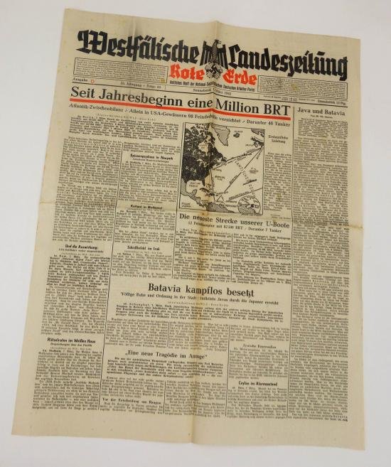 germaN WW2 NEWSPAPER (WestfÀlische Landeszeitung) in very nice condition March 7, 1942 in nice used condition