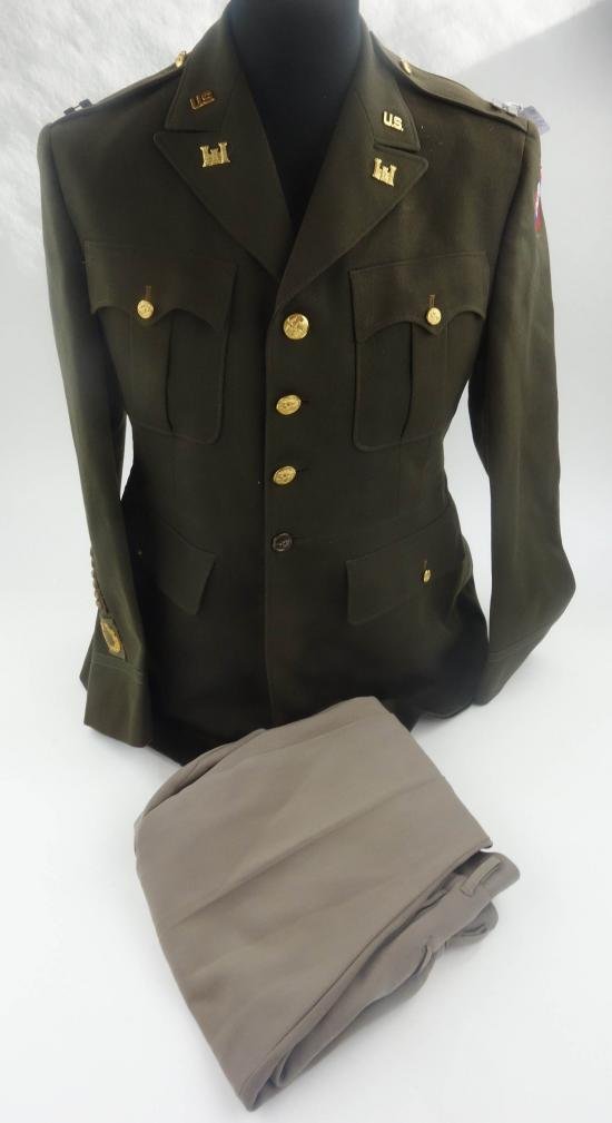 in very nice almost mint condition a usa wwII 82 airborne tunic + trousers with a original 82 airborne patch tunic is marked with 'lowe tailors inc ' and with the initials letters of a person i think 'D.W.Y' there is also a label in the pants with the text 'army officers trousers very nice set foor display