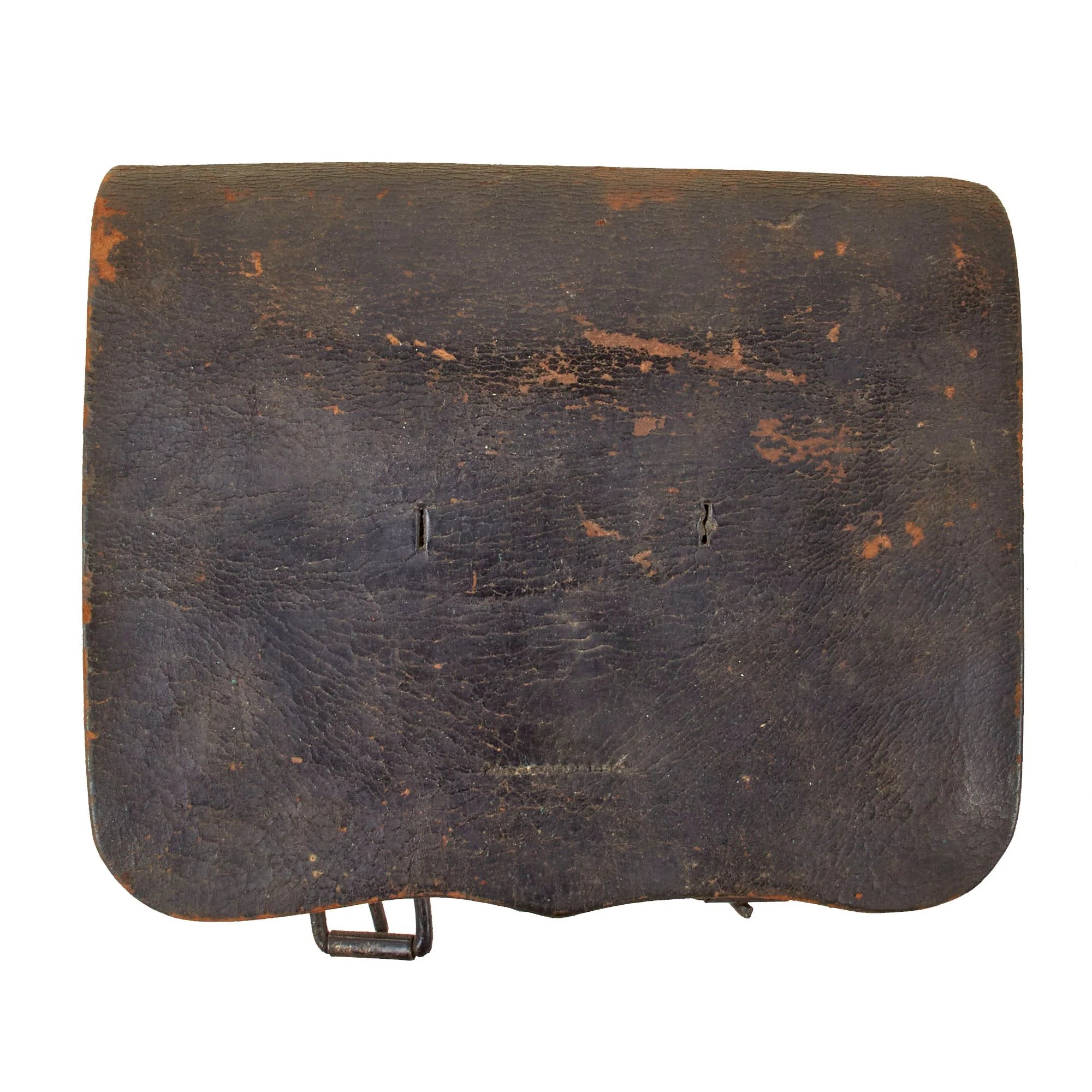 Item DescriptionOriginal Item: Only One Available. This is a worn example of a Federal Issue M-1861 Cartridge Box which is missing its belt plate. This box comes with the original tins, but the closure tab is entirely gone, although the knob is retained.This is a scarce cartridge box. With the adoption of new model arms In 1855 the army decided to modify the design and size of the cartridge box. A new pattern was adopted in 1857, and production started on the new pattern. It is quite similar to the previous pattern, the Patter 1839. The size was changed to hold the new .58 caliber ammunition. In addition, waist belt loops were added to the body of the box on the reverse. With the start of the war in 1861, the army issued large numbers of the smooth bore 69 caliber muskets. In the summer of 1861, contracts were issued for 69 cal round ball boxes in the new pattern 1857. The numbers produced were small and most if not all were issued.The Outer flap has heavy surface wear and the latch strap is gone. Both Cartridge box strap buckles are intact and sewn securely in place. The interior flap is intact with side ears of the flap both intact. The tool pouch is intact with a flap and closure tab. Leather shows signs of obvious age, flaking, and so on. With the exterior showing a well conserved finish. On the interior was a note reading:CARTRIDGE POUCH ANDBELT BELONGED TOROBERT MILLER - OFST. LOUIS - MO.WHO DIED DURING THECIVIL WAR OF AN EPIDEMIC.We could not identify Miller, but there is a lot of research to do on this one.This is a well worn example of a classic piece of Civil War equipage. Perfect for a collector looking to simply have a representative example, or an advanced collector!Shipping RestrictionsThis product is available for international shipping.Payment OptionsEligible for all payments - Visa, Mastercard, Discover, AMEX, Paypal & Sezzle