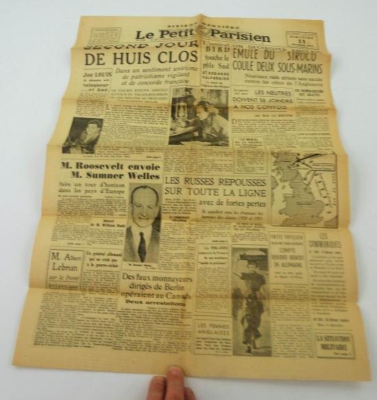 in a nice condition a French newspaper 'parisien'dated 1940the newspaper comes with the Originalband around it with the name of the recipientnice for a display