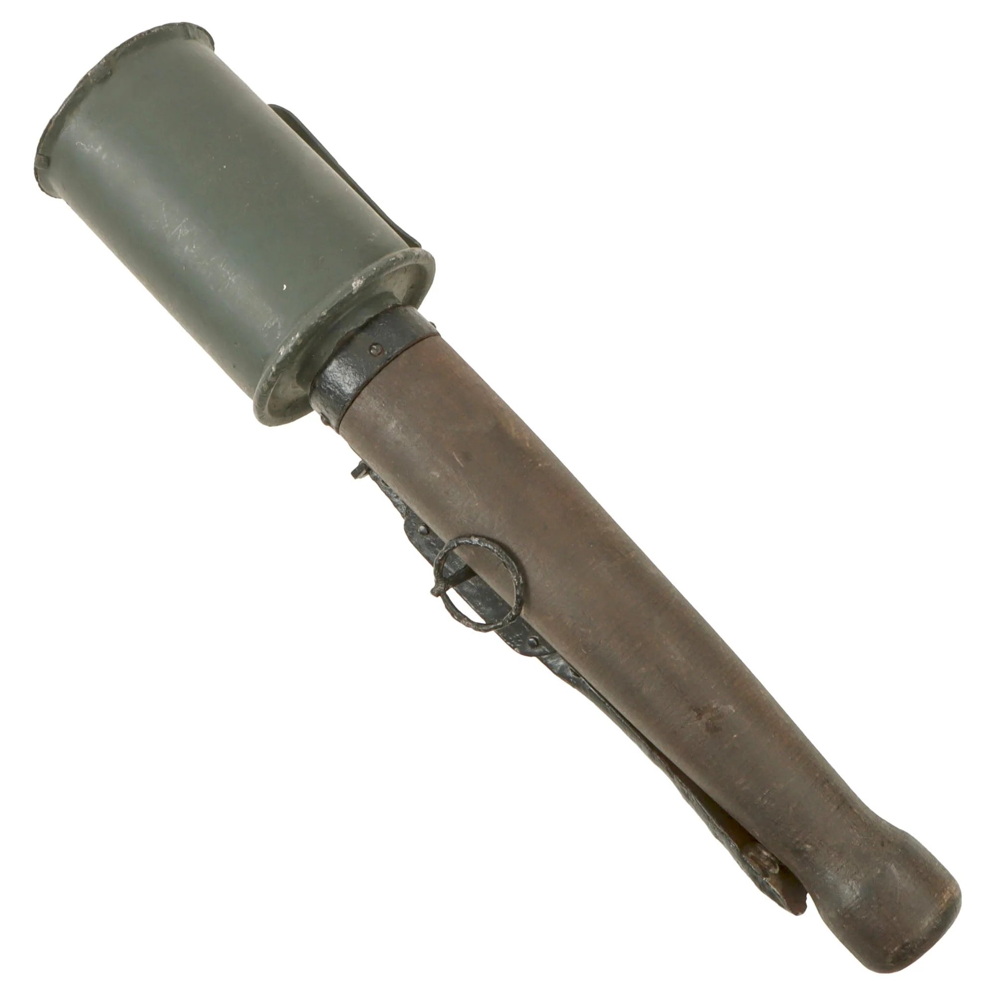 Original German WWI Inert M1915 Poppenberg Percussion Stick Hand Grenade Head & Fittings with Reproduction Wooden Handle- Stielhandgranate