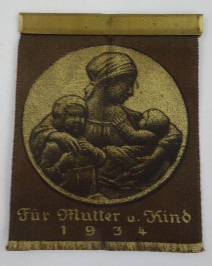 in a very nice used condition a german cloth tinnie ' fur mutter u kind 'The relief organization mother and child (short: relief organization MuK) was founded in 1934 during the time of the National Socialism and had the task of looking after pregnant women and young mothers and their offspring considered to be 'Aryan'. The relief agency was subordinate to the main office for public welfare in the Reich leadership of the NSDAP.