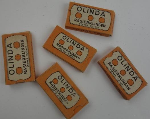 in mint condition 5 pack of wehrmacht razor bladesof the brand olinda with a capacity of 10 bladesin very nice mint condiotion very nice for your display