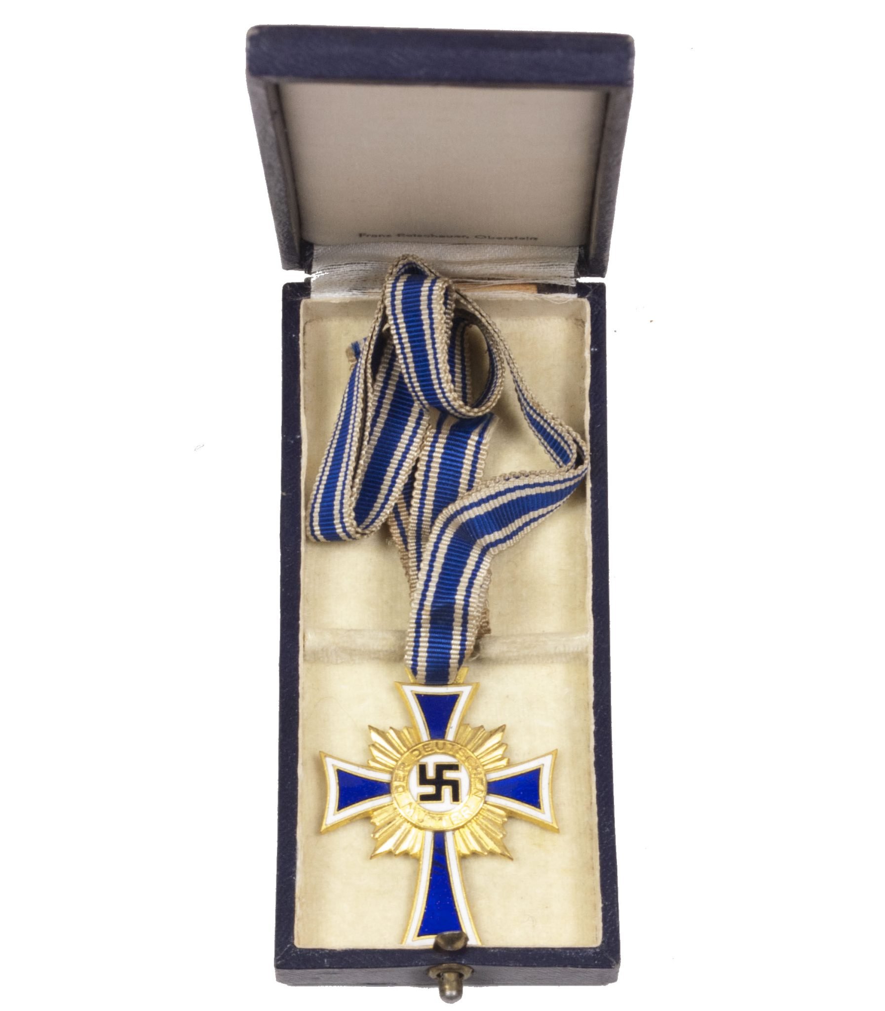 Mutterkreuz gold + etui (Maker Franz reischauer Oberstein).in good condition.For mothers with 8 or more children.