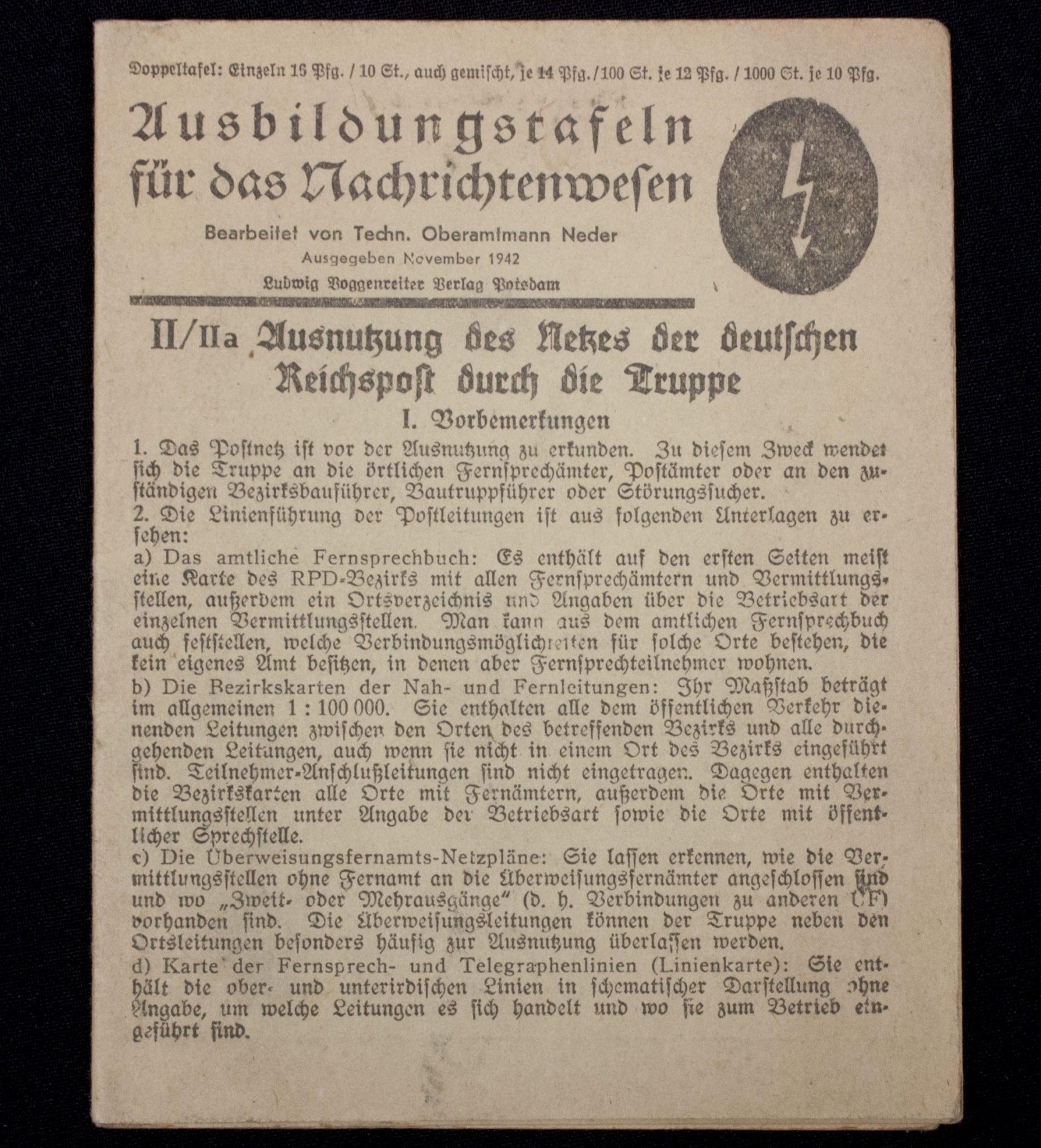 Ausbildungstafeln für das Nachrichtenwesen (1942).In good condition.